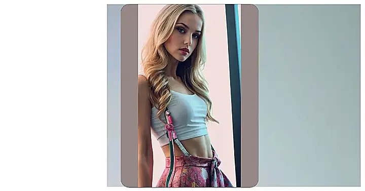 Check out this picture! Doesn’t she look like she’s ready to strut right onto your phone screen? With those cool blonde waves and eyes that pop, plus sparkly suspenders over a crop top and a floral skirt that screams ‘fun’, she’s definitely got that main character energy. If your phone or laptop background has been looking a bit… well, boring, maybe it’s time for a serious style upgrade, and this picture totally fits the bill for adding some personality.