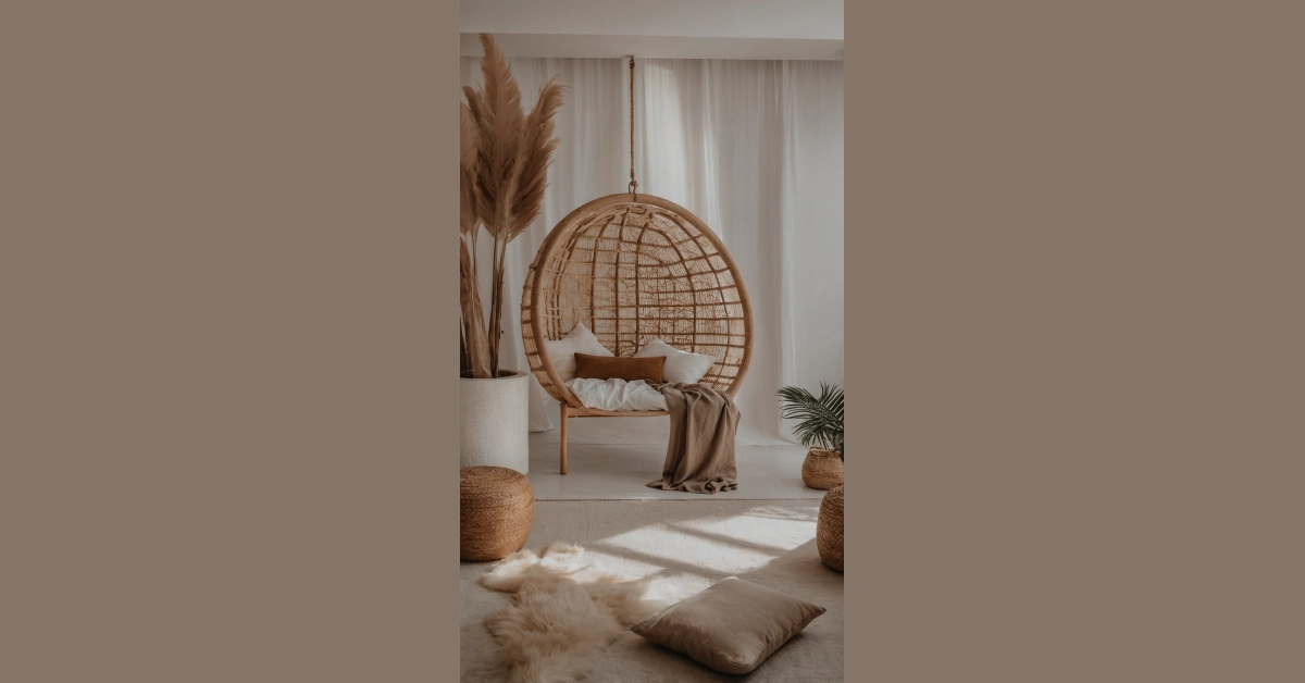 Beyond the epic chair, notice all those genius little touches that make this an aesthetic masterpiece. We’ve got the fluffy rug that probably feels like walking on clouds (or a very pampered sheep), those super chic pampas grass plumes that just scream ‘adulting goals’ without the actual adulting, and the softest lighting that makes everything look like it’s straight out of a magazine. It’s the kind of room where you could genuinely convince your parents you’re meditating, when in reality you’re just strategically avoiding chores. Just try not to spill your snacks on that pristine white blanket, because keeping a room *this* cool looking is a full-time job!