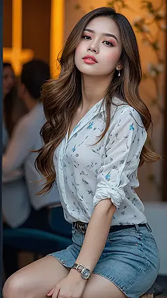 Check out this picture! Doesn’t she look like she’s ready to strut right onto your phone screen? With those cool blonde waves and eyes that pop, plus sparkly suspenders over a crop top and a floral skirt that screams ‘fun’, she’s definitely got that main character energy. If your phone or laptop background has been looking a bit… well, boring, maybe it’s time for a serious style upgrade, and this picture totally fits the bill for adding some personality.