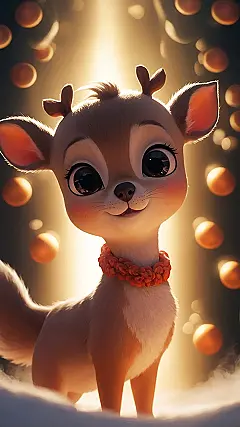 Prepare for some serious cuteness overload, because this little deer just won the ‘most adorable’ award, no contest! Just look at those giant, sparkling eyes – they’re practically asking for a hug, aren’t they? And with those perfectly rosy cheeks and that super chic coral flower collar, this fawn is serving up major style goals while chilling in what looks like a dreamy, glowing orange orb wonderland. It’s like it just popped out of a magical fairy tale to brighten up your day, making it the perfect candidate for your next favorite ‘cute wallpapers for girls’ collection.