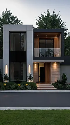 Speaking of hiding, that front door is like a secret entrance to Narnia, except instead of talking animals, you just get…more white walls. It almost looks like a spaceship landed in the suburbs and decided to blend in with the neighborhood by being as un-flashy as possible. Hopefully, the inside is a little more exciting than just a giant Instagram filter.