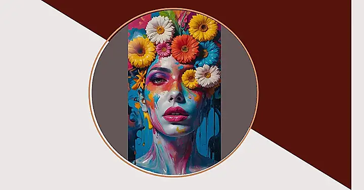 Those flowers on their head are giving off serious “I woke up like this” vibes, if “like this” means you battled a paint can and emerged victorious but slightly decorated. It’s a totally wild combination of vibrant blooms and dripping colors, making the whole thing look like a masterpiece that just woke up from a very colorful dream. Honestly, if this is what happens when you mess around with art supplies, maybe we should all start using our faces as canvases and embrace the beautiful chaos!