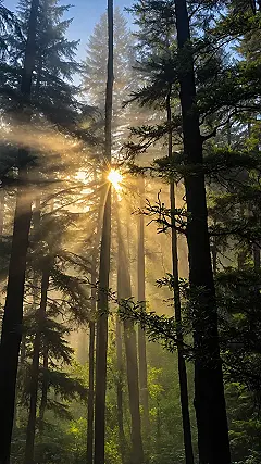 Look at those amazing sun rays! They’re not just light; they’re practically doing a dramatic entrance, slicing through the misty forest like nature’s very own laser show. It’s like the trees are throwing a massive, secret party, and the sun decided to crash it with a glorious golden glow. Having this incredible view as your window wallpaper means you get to soak up those serene, mysterious vibes every single day. Who needs a fancy art gallery when your own room can feel this wonderfully wild and full of magic?
