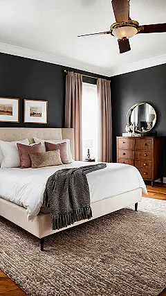 This bedroom isn’t just a place to sleep; it’s practically a comfort trap designed by experts. With that super plush rug begging your feet to stay put and a bed piled high with enough pillows to build a fort, getting out of bed in the morning would be an Olympic-level challenge. Seriously, who needs an alarm when your room looks this good? If you’re tired of your current digs and dreaming of a cozy setup where even your pet wants to hang out all day, thinking about ‘rooms to go’ for an upgrade could be your next best move.
