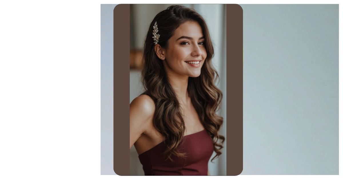 Plus, who needs a crown when you’ve got a fancy little leaf clip holding all that fabulousness in place? It’s like her hair is having its own red carpet moment, perfectly sculpted with those gorgeous side waves, practically whispering, “Yes, I woke up like this, and yes, I’m probably going to a fancy dance party tonight.” It’s the ultimate ‘I tried, but not *too* hard’ vibe that everyone secretly wants to master.