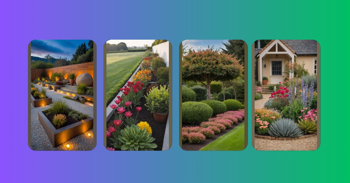 And let’s not forget the supporting cast! The spiky green plants in the front look like they’re trying to stand extra tall, maybe hoping to get a better view of all the colorful drama unfolding. Meanwhile, the perfectly trimmed bushy greens are probably the garden’s chaperones, trying to keep everyone in line. With all that fresh, dark mulch and a snazzy stone border, it’s clear someone spent a lot of time making sure these flowers feel like A-list celebrities. They probably even have tiny flower-sized security guards making sure no rogue dandelions try to crash their very exclusive VIP section.