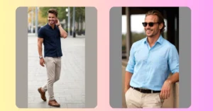 Let’s be real, some days you just want to roll out of bed and magically look like you spent hours planning your wardrobe. Well, this guy clearly found the secret scroll! His light blue button-up shirt and fresh white pants scream “I’m stylish, but I also enjoy sleeping in.” It’s like the official uniform for looking sharp without trying too hard, perfect for those days when you want to impress without anyone suspecting you just threw it on. Plus, that confident smile? That’s what happens when your shirt outfit is doing all the heavy lifting!