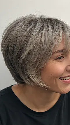 And seriously, those layers give this straight bob fantastic bounce and personality, so it’s not just sitting there looking flat. This is the kind of haircut that probably air-dries perfectly while you’re still deciding what meme to send next. Whether you’re rushing to class or just chilling with friends, a sleek, straight cut like this means less hair fuss and more time for actual fun (and maybe less time untangling brush monsters!). Plus, that gorgeous ash blonde color is just chef’s kiss!