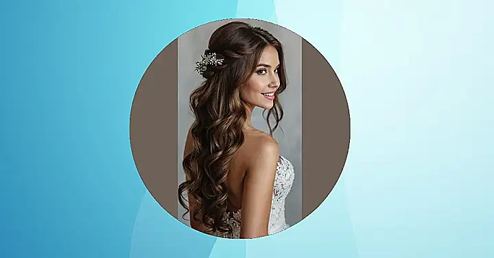When you’re tying the knot in autumn, you want a hairstyle that’s as stunning as the changing leaves, and this bride absolutely nailed it! Her hair is like a waterfall of bouncy, glamorous waves, looking perfectly styled even if a mischievous autumn breeze decides to join the party. That sparkly, vine-like accessory tucked into her half-updo is just the right touch, making her look effortlessly elegant – like she just woke up flawless and decided to get married. Seriously, this look has us ready to grab a pumpkin spice latte and plan a wedding!