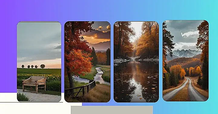 Imagine waking up to this gorgeous scene on your phone! It’s like stepping into a painting, with the fiery red leaves of a majestic tree reaching for the sky, a winding river that seems to whisper secrets, and the warmth of a sunset that’s painting the clouds in a breathtaking array of colours. It’s the kind of view that would make even the most grumpy Monday morning a little bit brighter, right?