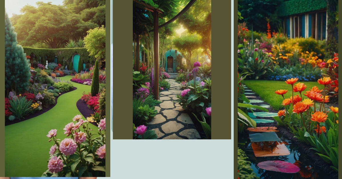 This picture looks like a scene straight out of a fairytale! Imagine you’re walking down a mysterious path, surrounded by lush greenery and colorful flowers. The sunlight peeks through the leaves, casting magical shadows. You can almost hear the birds chirping and the gentle rustling of leaves. Where is this path leading? Is it to a hidden castle, a talking animal, or maybe even a friendly dragon? Who knows what secrets this garden holds!
