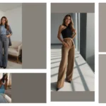 This image shows a woman looking super confident and stylish. Her outfit is perfect for work – a chic black top paired with wide-legged trousers. It’s the kind of outfit that makes you feel powerful and ready to take on the world. You can totally imagine her giving a presentation or leading a team meeting, right? This look is all about feeling good in your own skin and showing everyone you mean business!