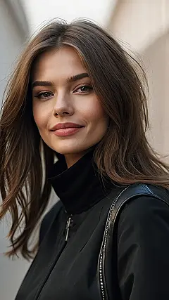 This girl’s got a hairstyle that’s totally trending! It’s like the perfect blend of effortless cool and “I woke up like this” (even if she totally didn’t). Long layers, a bit of texture, and a color that’s just gorgeous – it’s the kind of look that’s popular with girls everywhere, and honestly, who wouldn’t want to rock something this chic and easy-to-manage? It’s the kind of hairstyle that screams, “I’m confident and ready to take on the world,” but also whispers, “I also appreciate a comfy night in.”