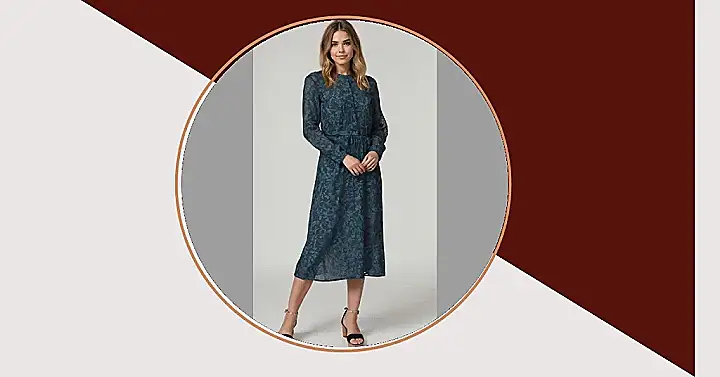 So, you got a party invite and immediately thought, “What do I even wear that’s comfy enough for dancing but still looks super cool?” Well, check out this dress! It’s got that awesome ‘knee length party dresses’ vibe, even if it decided to hang out a little longer, like it’s saying, “My knees are just having a lazy day, thanks!” The dark teal with those leafy patterns is basically a secret garden you can wear. You’ll look effortlessly chic, whether you’re busting out your best (or worst) dance moves or just grabbing snacks without feeling like you need to constantly adjust your outfit.