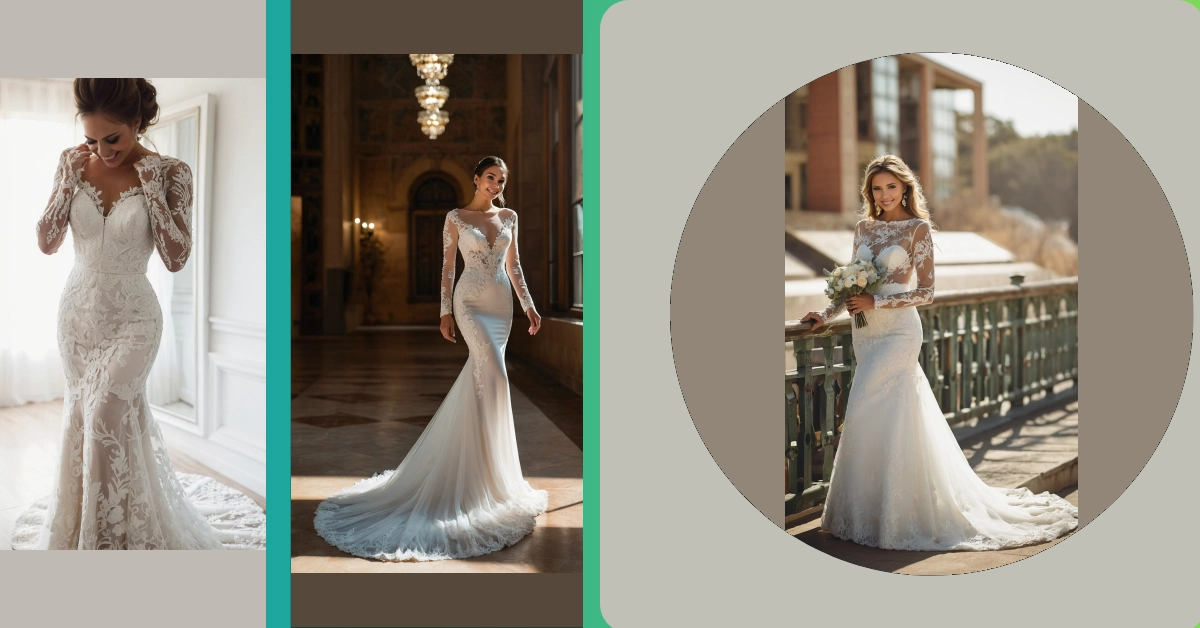 Forget clunky princess dresses! This mermaid style is all about graceful movement. The flowing train trails behind you like a shimmering ocean wave, making it perfect for creating stunning photos. And those long sleeves? They’re not just pretty – they’ll keep you feeling warm and comfy, even if you have your ceremony outdoors. It’s the perfect blend of classy and comfy. Now, all you need is a prince (or a really nice person!) and a fantastic wedding party!