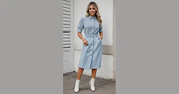 Getting ready for your weekend adventures doesn’t have to be a whole ordeal. Just slip into this breezy button-down dress, pair it with some fresh white boots like the ones in the picture, and you’re instantly ready for whatever fun comes your way. Whether you’re hitting up the mall, cheering on your school team, or simply chilling out at home, this outfit screams “I’ve got style and I know how to relax!” It’s like your personal superhero costume for conquering the weekend with a smile.