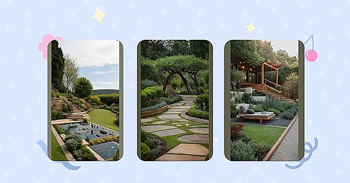 Turning a garden like this into an edible masterpiece isn’t as wild as it sounds. You could swap out some of those decorative bushes for vibrant rainbow chard that looks like an art piece, or have a cherry tomato vine climbing up a trellis by that cool archway. Suddenly, your serene stroll becomes a treasure hunt for dinner ingredients! It’s all about designing a space that’s so stunning, your friends will be jealous, and so yummy, your taste buds will throw a party. Who needs a grocery store when your backyard is serving up fresh, delicious, and totally beautiful produce?