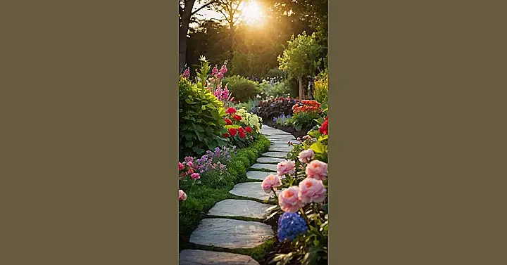 This enchanting flower garden looks like a magical place straight out of a fairytale! Imagine tiptoeing along that stone path, the warm sun on your face, surrounded by a rainbow of blossoms. It’s like the flowers are having a party, and you’re invited – just don’t step on any of them, unless you want to cause a floral riot! The whole scene is so peaceful and pretty, it’s almost enough to make you forget about that algebra test next week… almost!