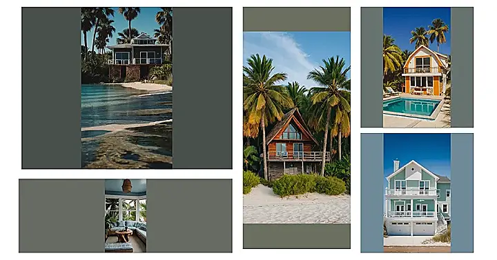 The beach house itself is pretty cool too. It looks like it has a big deck, perfect for hosting summer parties, and probably has a comfy living room where you can curl up with a good book. Who wouldn’t want to spend their days swimming, sunbathing, and relaxing in this tropical paradise? This beach house definitely has the “no worries” vibe going on, and itβs easy to see why someone would want to call this place home!