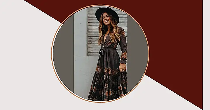 The soft, earthy tones of the dress are perfect for the fall season, and the overall look is totally effortless and chic. It’s like the perfect blend of boho vibes and autumnal elegance. Plus, with those gorgeous waves and that bright smile, this girl is rocking this look from head to toe! We’re definitely inspired to find our own boho-chic fall outfit!