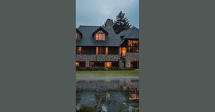 This house is seriously cool. It’s like something out of a fairytale, but instead of a princess living there, it’s probably a super cool rockstar. The stone walls make it look super strong and sturdy, and the big windows let in tons of light. I bet it’s warm and cozy inside, perfect for snuggling up by the fireplace on a cold winter night.