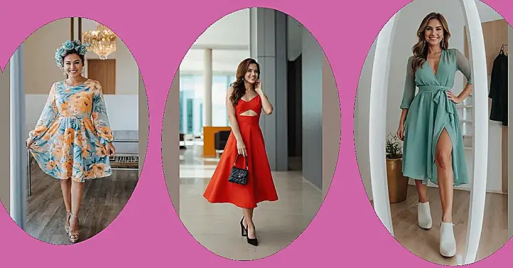 This lady is rocking a vibrant red dress that’s as bright as a stop sign and just as eye-catching! It’s got a little cut-out detail, which is totally trendy, and the flowy skirt makes it look like she’s about to dance the night away. She’s looking confident and ready for anything, maybe even a night out with friends or a fancy dinner. It’s a perfect example of how a simple dress can make a big statement, and a great reminder that red is always the right choice when you want to turn heads!