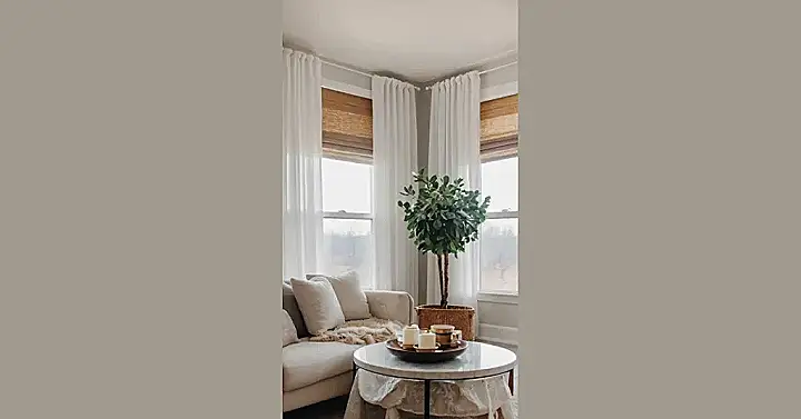 Next up, ideas with blinds are here to brighten your day! Think of those adorable wooden blinds paired with fun patterned curtains. It’s the perfect combo for adding style and functionality to your living room. Control the light easily during the day, and when the sun sets, those patterned drapes will steal the show and create a whimsical ambiance!