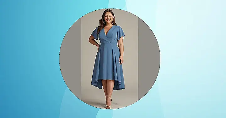 This dress is like a secret weapon for looking amazing! It’s got a beautiful blue color that’s totally flattering, and the high-low hemline makes it super unique. You can wear it for a fancy occasion, or even dress it down with some sneakers for a casual look. The best part? It’s made for plus size bodies, so you can be sure to feel confident and comfortable!