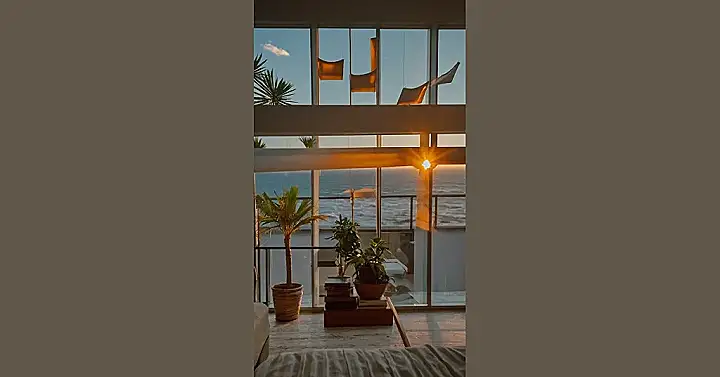 Imagine waking up to this view every day! This room, with its large windows, makes you feel like you’re living right on the beach. You can practically smell the salty air and feel the warm sun on your face. It’s like a little slice of paradise!