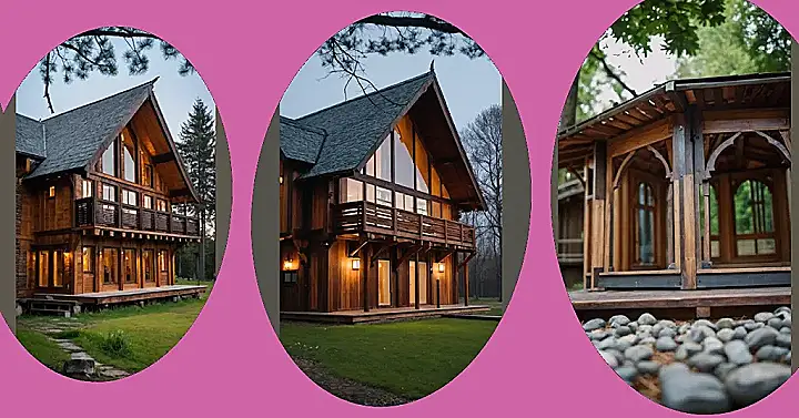 This house is made almost entirely of wood! It’s like something straight out of a fairy tale, except instead of a witch, you’ll find a comfy couch and maybe a fireplace. The wooden beams and walls give it a rustic charm, and it’s the perfect place to relax and enjoy nature. You can almost smell the pine trees and feel the crisp air as you step inside.