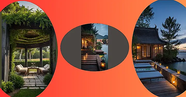 This picture screams “relaxation”! Imagine yourself sipping a lemonade on that comfy-looking porch swing, with the soft glow of the lights and the peaceful sound of water lapping against the wooden deck. It’s like a scene out of a movie, except you get to be the star!