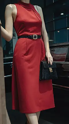 This lady is rocking a classic red dress, perfect for a casual day out or a fancy evening event. It’s like she’s saying, “I’m ready for anything!” That sleek black belt and matching handbag add a touch of sophistication, making her look totally put together. She’s the queen of casual chic, and she’s not afraid to show it!