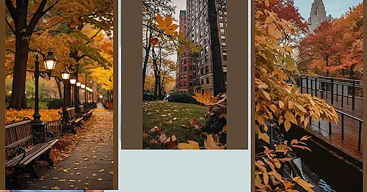This photo makes me want to grab a warm drink and wander through the streets of New York City. Just imagine, you’re walking down a quiet path, the leaves are crunching under your feet, and the air smells like pumpkin spice lattes. You can see the tall buildings in the distance, but the park is peaceful, a little slice of nature in the heart of the city. The lampposts are lit up, giving a magical glow to the whole scene. I bet it’s the perfect place to enjoy the beautiful fall weather, especially when the wind starts swirling those golden leaves all around you!