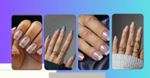 These nails are like a little slice of nature on your fingertips! The soft blue and creamy white colors remind us of a cool, breezy day, while the sparkly ring looks like tiny dewdrops on a flower. They’re so pretty and sophisticated, you’ll want to show them off to all your friends (and maybe even your grandma!).