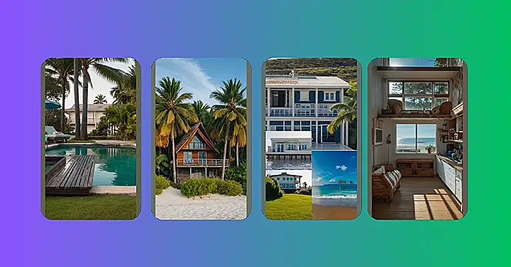 This picture screams “beach house” vibes! It’s like stepping into a postcard, with those super tall palm trees, a gorgeous pool shimmering in the sunlight, and even a cool little wooden platform for chilling out. It’s a place where you could totally forget about homework and just soak up the sunshine. Maybe even grab a good book and relax by the pool. It’s a total paradise, and I’m already dreaming of being there!