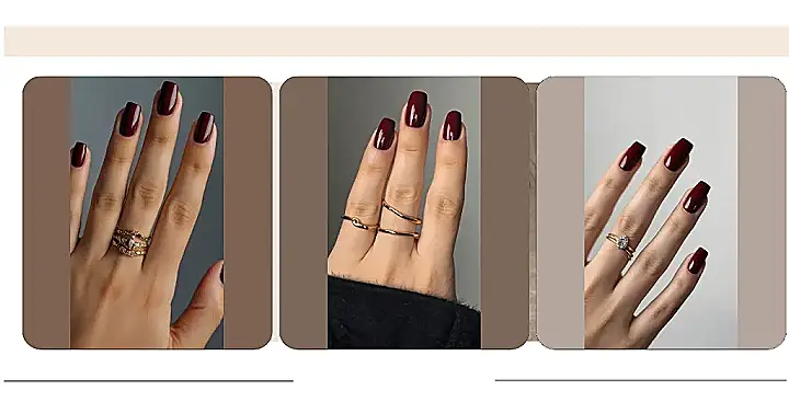 These nails are so red, they’re practically begging to be shown off! Imagine walking into school with these bad boys, and everyone’s like, “Whoa, your nails are fierce!” They’re perfect for fall, with that deep burgundy color that reminds you of cozy nights by the fireplace, sipping hot chocolate, and dreaming of pumpkin spice lattes (which are definitely not as good as the ones they make at your favorite coffee shop, but still pretty good).