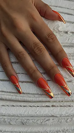 And those gold swirls? They’re like little gold nuggets, ready to be picked up by someone lucky enough to catch your eye. Just don’t forget to wear gloves to keep them safe. You wouldn’t want your nails getting chipped when you’re digging through a pile of leaves, would you? Not with a manicure this fabulous!