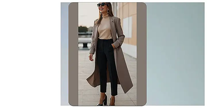This girl knows how to rock an elegant outfit! With her sleek black pants, stylish brown coat, and perfect black heels, she looks ready to take on the world. Her outfit screams confidence, and let’s be real, who wouldn’t feel great in those killer heels? She looks so comfortable and put-together, like she just rolled out of bed looking amazing. Honestly, I wouldn’t mind stealing her style – I bet she could give any fashion icon a run for their money!