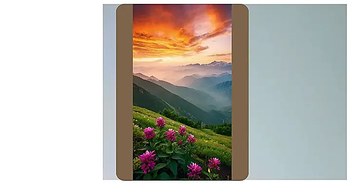 The image shows a stunning view of mountains at sunset, with the sky painted in vibrant hues of orange and pink. It’s like a scene from a dream! You can almost feel the cool mountain air and hear the gentle whisper of the wind through the trees. The mountains are all lined up, like a bunch of giant steps leading up to the sky, and the clouds are like cotton candy, just floating along.