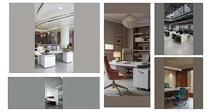 The office design is all about that sleek and modern vibe. It’s got dark colors, clean lines, and just the right amount of light to keep things feeling bright and airy. It’s like having a personal workspace that’s actually cool and inspiring, not boring and dusty like some offices you see!