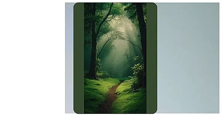 This picture is like a portal to a secret world, with all the green you could ever want! It’s got tall, mysterious trees that look like they could be hiding all sorts of creatures – maybe even a friendly gnome or two. The sunbeams peeking through the leaves are like little spotlights, making the whole scene feel magical.