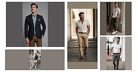This guy is rocking the classic look! He’s got the white shirt, the khaki pants, and the brown shoes – all the essentials for a cool and casual outfit. He’s even got his hands in his pockets like he’s got the whole world figured out. But you know what? Even if you don’t have the same ripped abs, you can still nail this look. Just find a white shirt and a pair of khakis that fit you well, and you’ll be good to go. Maybe skip the fancy watch though, unless you’re really feeling yourself!