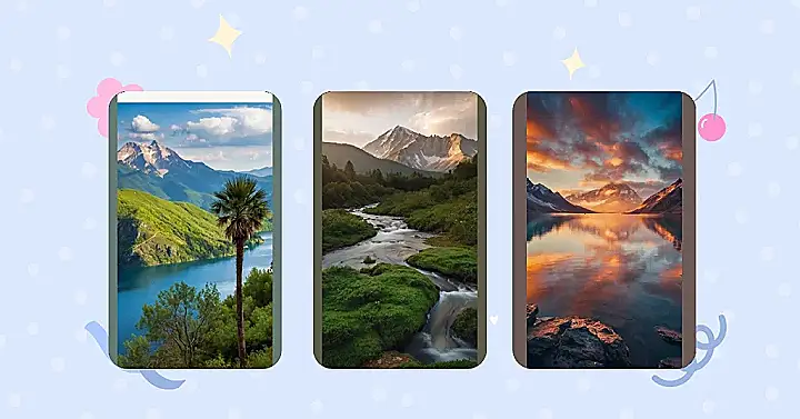 This picture is like a postcard from a dream! Imagine hiking through those beautiful mountains, the air crisp and cool, and the sun setting over the peaks in a blaze of golden light. You could almost reach out and touch the fluffy clouds in the sky, or maybe even grab a handful of those sparkling sunbeams! The picture makes you want to pack a backpack, grab some snacks, and head out on an adventure to find your own perfect mountain view.