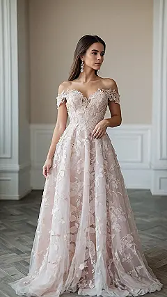 This dress is like a walking flower garden, but instead of smelling like roses, it smells like confidence! The delicate floral design is absolutely stunning, and the off-the-shoulder style adds a touch of elegance. It’s like a princess from a fairytale, but without the annoying talking animals (unless you count your dog, of course).