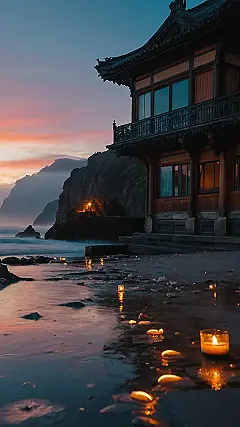 Imagine a place where the water is so still it acts like a mirror, reflecting the colors of a sunset so beautiful it feels like a dream. Now imagine a mysterious house perched on the edge of this magical scene, with windows glowing warmly like lanterns. You’d think it was straight out of a fairytale!