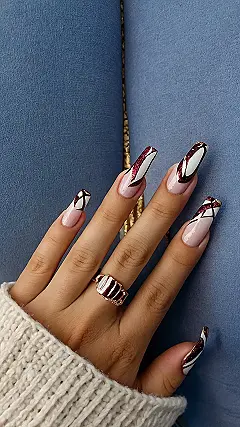 These nails are giving major autumn vibes! The deep burgundy and nude colors are a perfect match for the changing leaves and cozy sweaters. You can totally picture yourself sipping pumpkin spice lattes and rocking these gorgeous nails. They’re like the chicest version of a Thanksgiving feast, minus the mashed potatoes and cranberry sauce (although who doesn’t love those?).