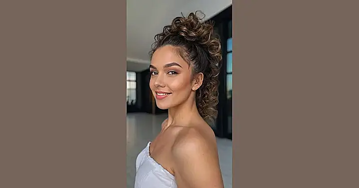 This girl is rocking a seriously cool curly hairstyle! It’s like she just rolled out of bed, but somehow managed to look totally amazing. Even though her hair is pulled up, those curls are still poppin’ out, showing off their natural beauty. It’s a great reminder that you don’t need a ton of styling products or complicated hairdos to look fabulous. Sometimes, a little bit of natural beauty goes a long way!