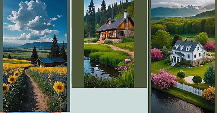 This picture is a total nature lover’s dream! It’s like a scene straight out of a fairytale. You’ve got this cozy little cabin nestled in a grassy meadow, with a babbling brook winding through the scene. Just picture yourself relaxing on the porch swing, sipping lemonade, and listening to the birds chirping. It’s the perfect spot to escape the hustle and bustle of everyday life.
