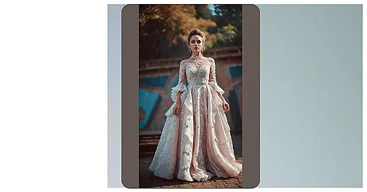 This dress is like a walking garden! It’s got more flowers than a whole field, and it’s a super-pretty shade of blue that’s like a summer sky. It’s so flowy and dramatic, it looks like something out of a princess movie. You can just imagine it twirling in the wind as you walk down the street, leaving a trail of flowers in your wake.