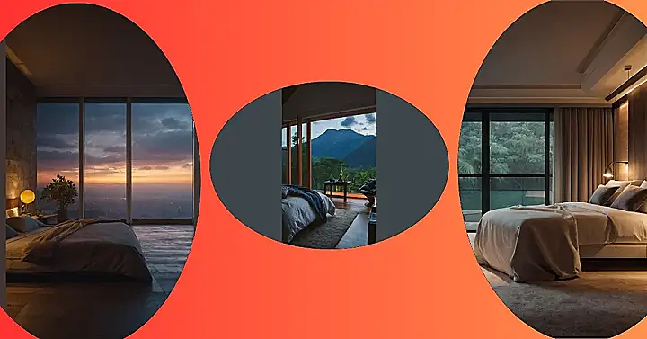 Imagine waking up to the sun painting the sky with a thousand shades of orange and pink, all from the comfort of your own bed! This picture makes you feel like you’re living in a cool and modern apartment with a view that’s straight out of a dream. It’s like the room is saying, “Hey, relax and enjoy the view while sipping your morning coffee, because life is pretty amazing!” Maybe the bed is even mint green, like a calming oasis in this incredible urban jungle.